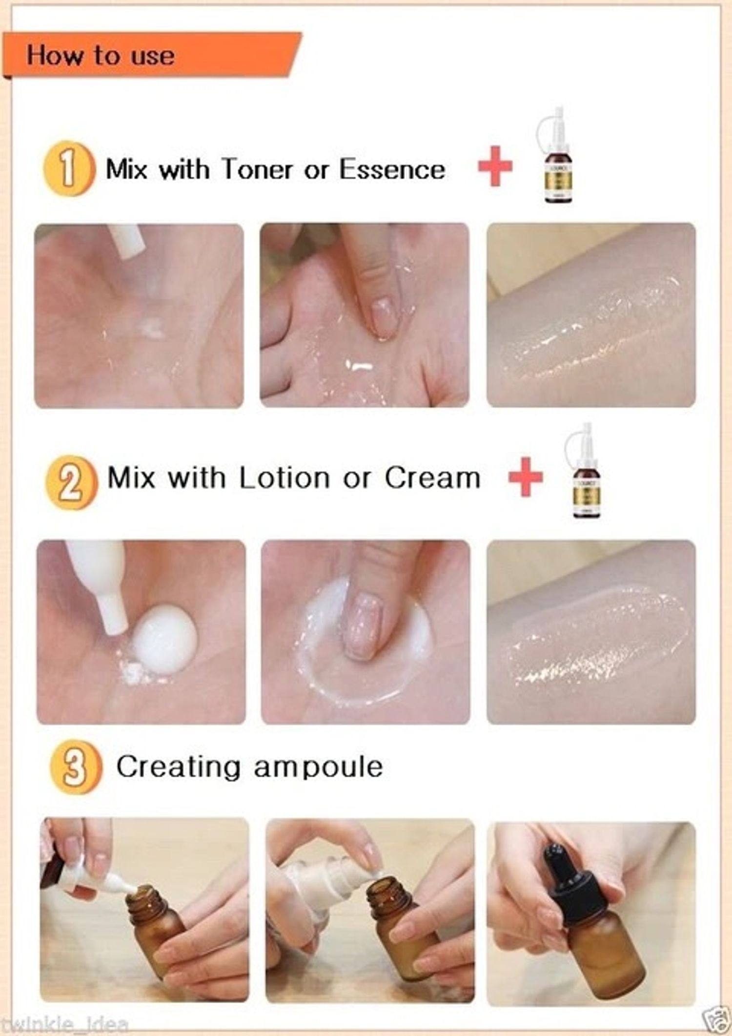 3. Витамин С + цайруулах тос, цайруулах ампул : Витамин С нунтаг нь синергетик нөлөө үзүүлэхийн тулд гэрэлтүүлэгч гоо сайхны бүтээгдэхүүнтэй хамт хэрэглэж болно.